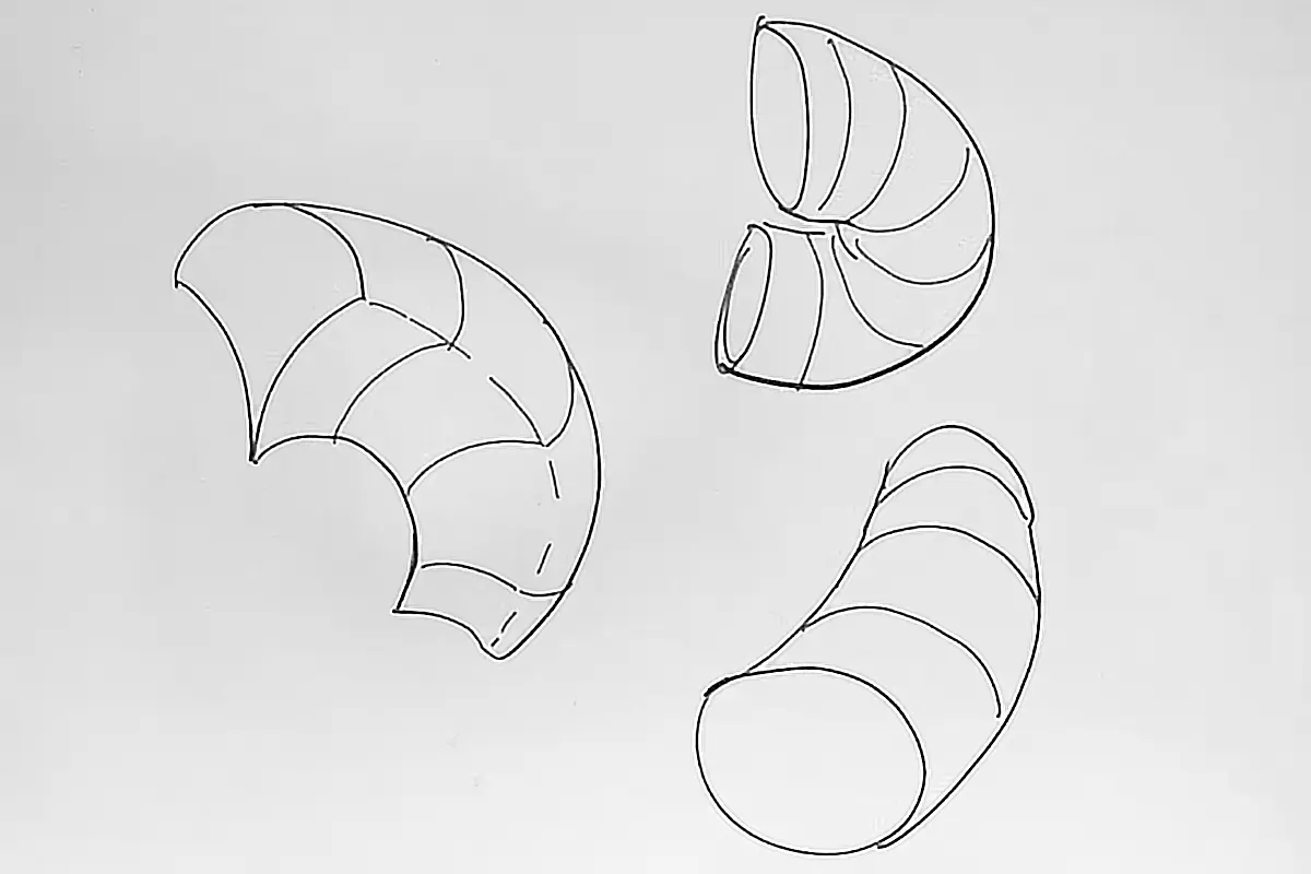 Nice! Let's try it with some simple cylinders next! We can draw the simple cylinder but give it a bend somewhere! Imagine you are playing with play-doh!