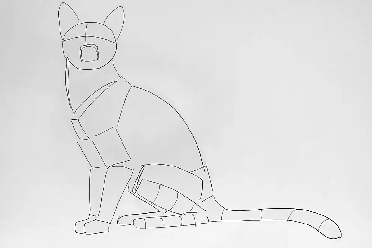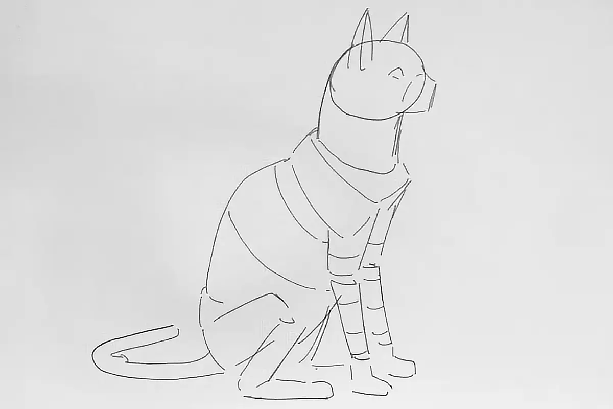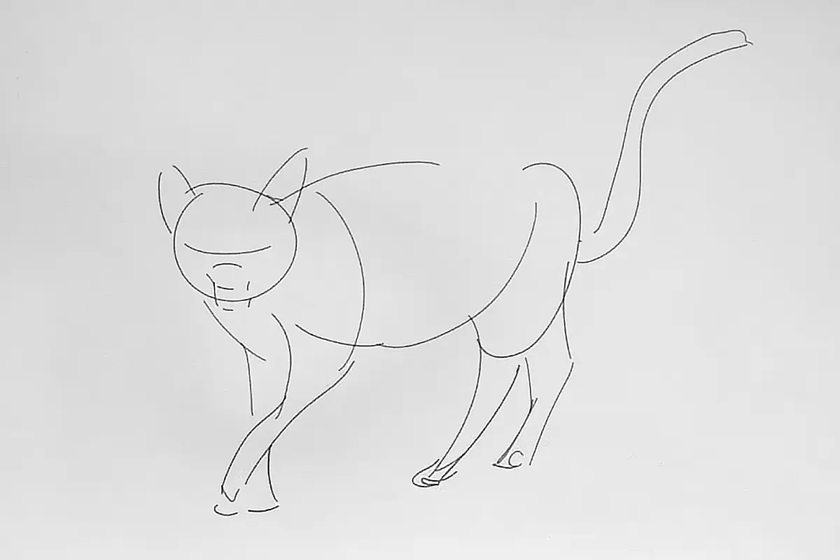 Now that you have an idea how a cat is broken down into its simplest form, it's time to practice drawing it again but from imagination! We practice this by rotating it in a different angle than our tracing!