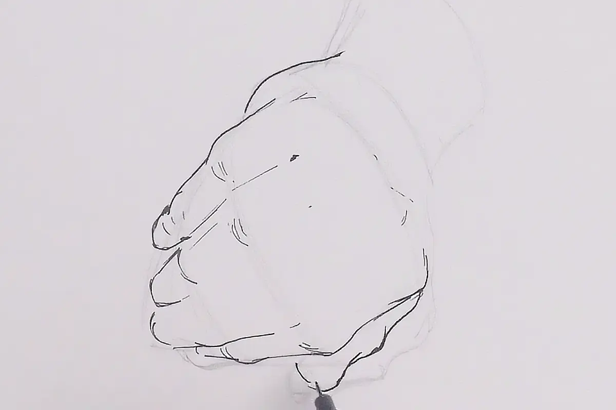 Une fois que tu as ton contour de base, commence à ajouter des détails comme les doigts, les articulations et les jointures. N'oublie pas que le dessin ne consiste pas à ajouter chaque ligne, mais à créer l'illusion d'une forme. Expérimente la quantité de détails à inclure et trouve ce qui vous convient le mieux.
